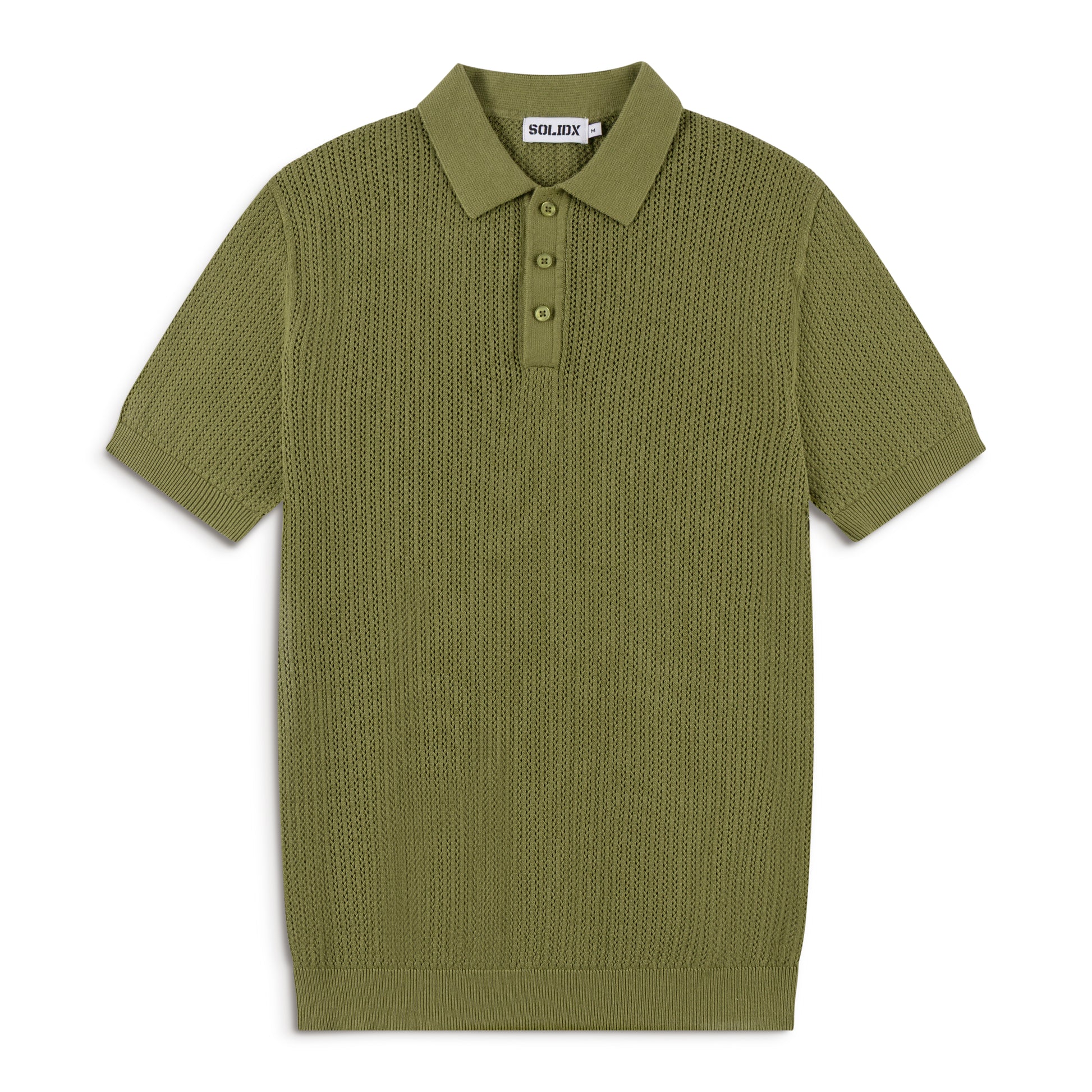 AirKnit Olive Pointelle Textured Knit Polo