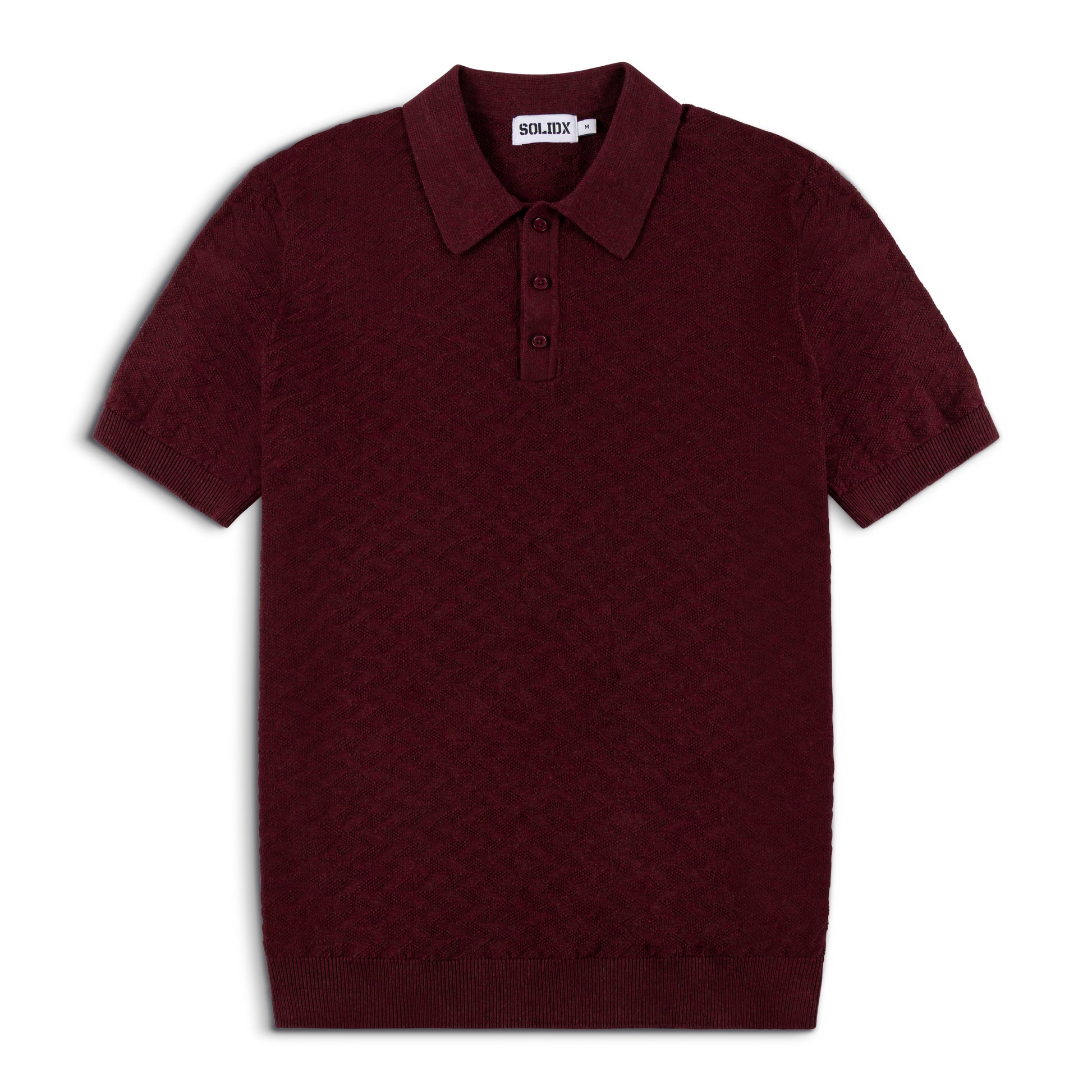 Crafted from lightweight breathable cotton knit, the refined geometric texture adds depth while maintaining a clean, sophisticated silhouette. The structured collar and classic three-button placket create a timeless look, while ribbed cuffs and hem provide improved fit and durability.
